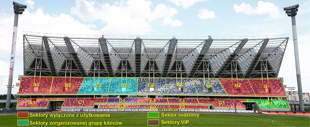 Zapraszamy wszystkich kibiców do zapoznania się z układem sektorów i informacją o przeznaczeniu ich w trakcie niedzielnego meczu z Motorem Lublin.